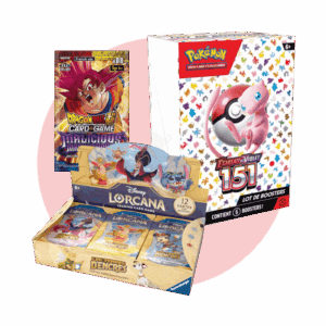 Retrouvez tous nos produits phares sur les licences Pokemon, Yu-Gi-Oh, Dragon Ball Z et Disney Lorcana.