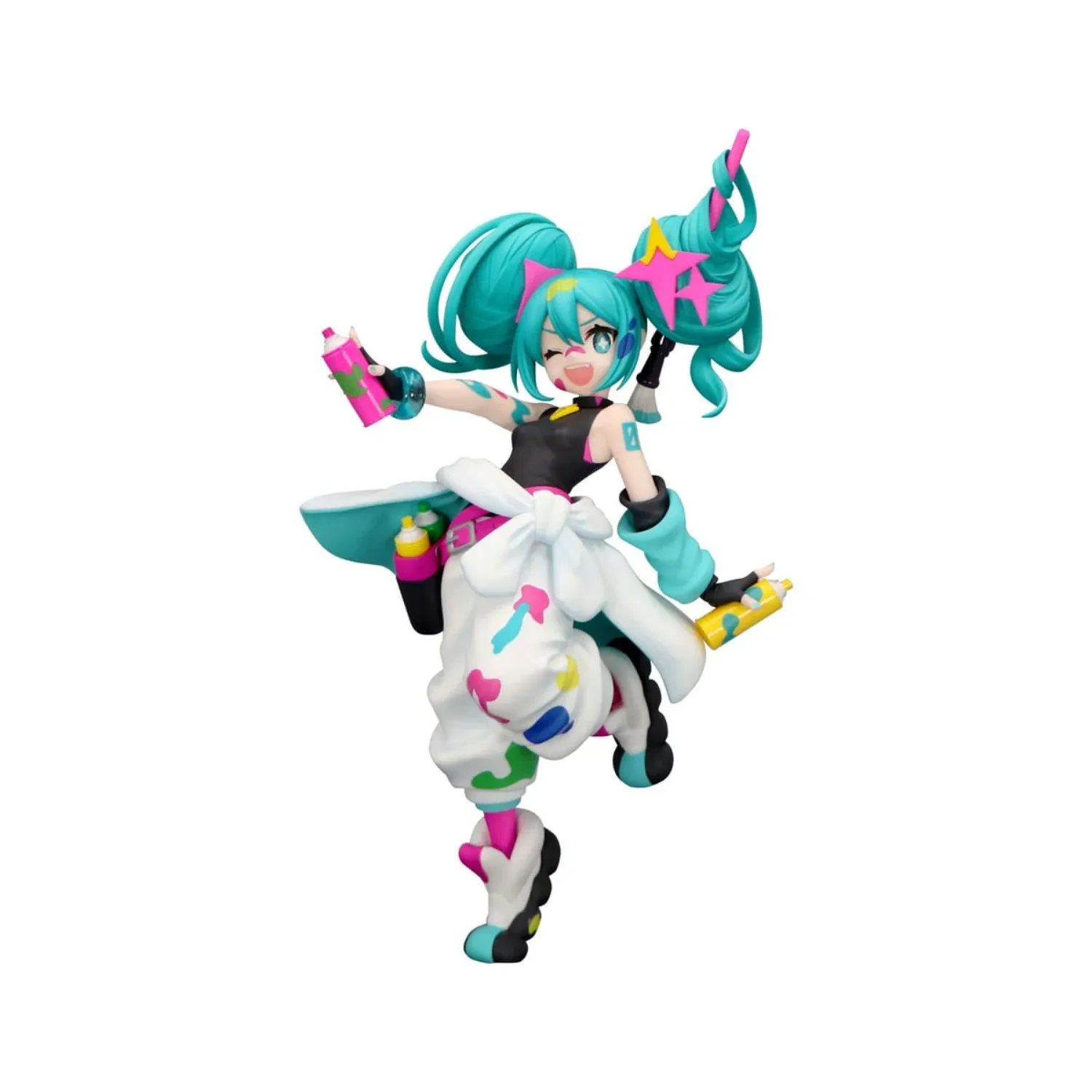La figurine Hatsune Miku – Trio-Try-iT Miku Paint Girl mesure environ 19 cm et se distingue par sa représentation dynamique. Dans cette version, Miku est vêtue d’un ensemble de peinture aux couleurs éclatantes, tenant des bombes de peinture dans ses mains, comme si elle était sur le point de transformer le monde qui l’entoure en une toile vivante. Les détails minutieux de sa tenue colorée et son expression joyeuse évoquent l’esprit créatif qui anime ce personnage bien-aimé des fans de Vocaloid.