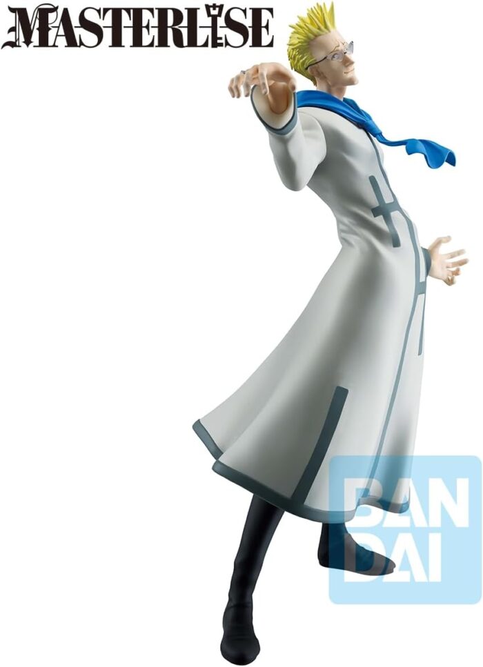 Le sculpt capture à la perfection l’aura menaçante et calculatrice de l’antagoniste principal de l’arc. Derrière ses fines lunettes et son air calme se cache un tueur impitoyable, prêt à déclencher son “Countdown” ou son “Little Flower”. La texture de ses vêtements et sa posture confiante sont reproduites avec une précision chirurgicale digne des meilleurs sculpteurs de Bandai.