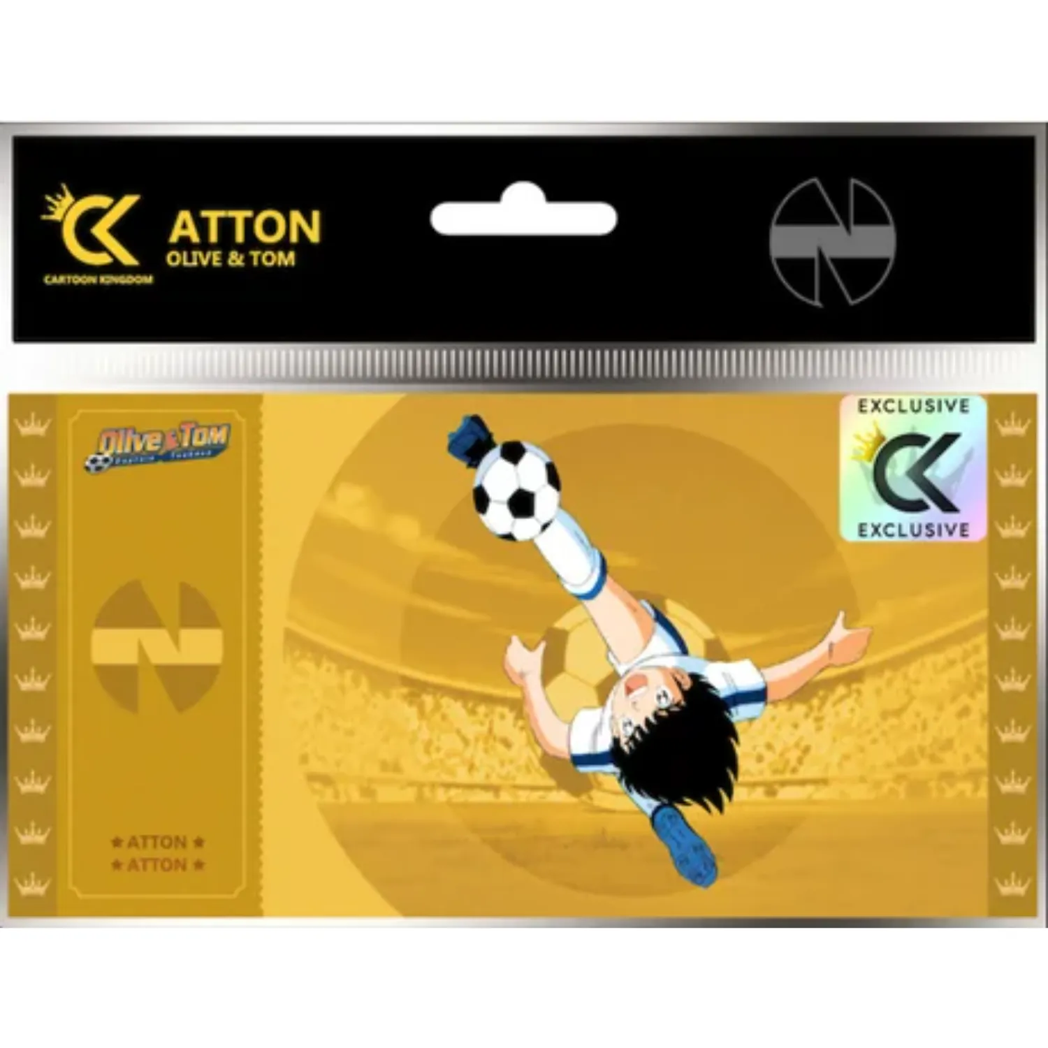 Le sésame vers l’aventure ! Découvrez le Golden Ticket Atton Exclusive, un bijou sous licence officielle, imprimé en Haute Définition et orné d’une dorure éclatante. Avec ce ticket, plongez dans l’univers de Captain Tsubasa comme jamais auparavant !