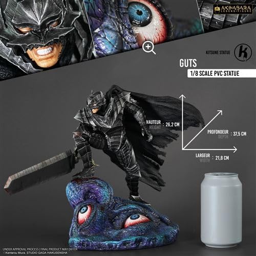 Plonge dans la rage de Guts ! Cette pièce Kitsune exclusive incarne la force brute du Berserker. Un must pour tout fan de Berserk. Guts Berserker 1/8 Statue 26cm