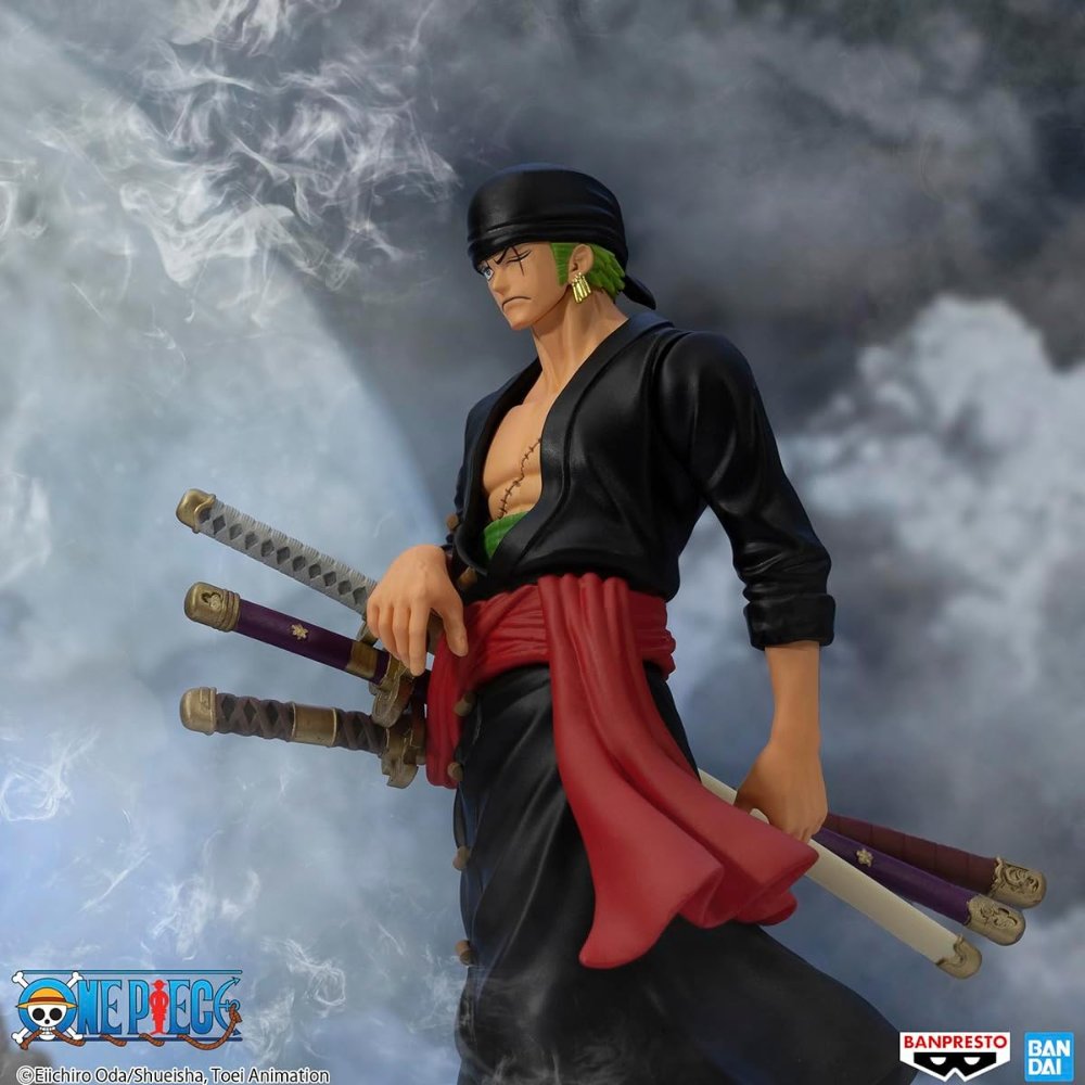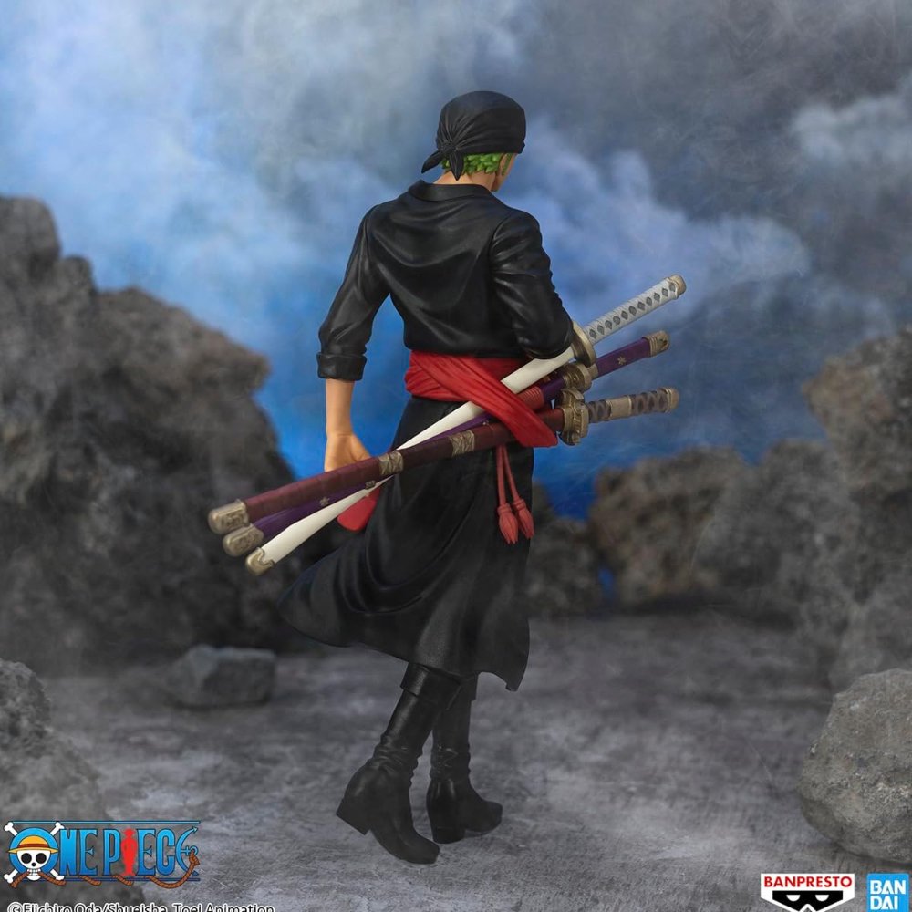 Modèle de 17/cm représentant Roronoa Zoro dans sa tenue futuriste de larc Egghead, prêt à trancher avec style